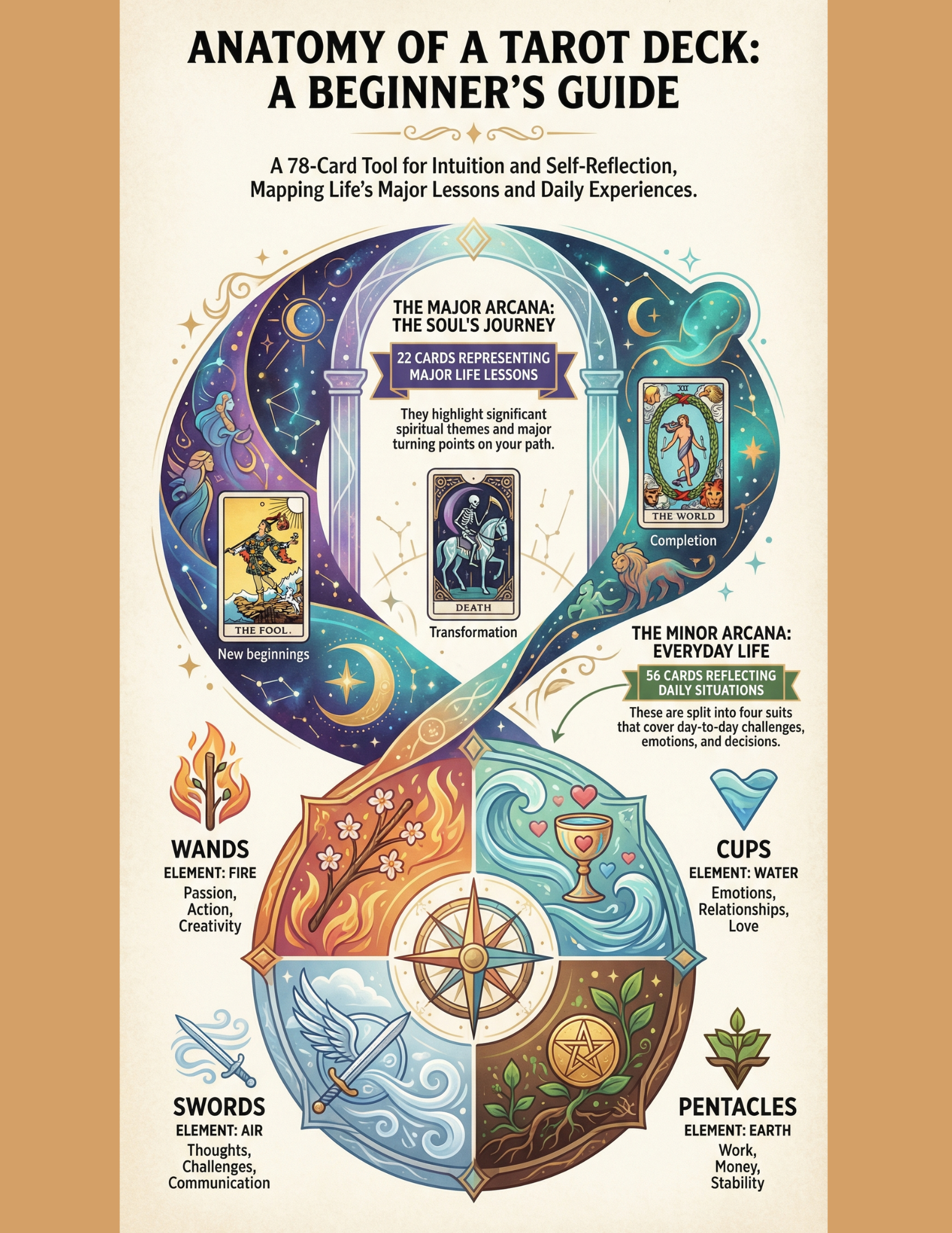 Inside, you’ll learn how a full 78-card tarot deck is structured and why it matters.
